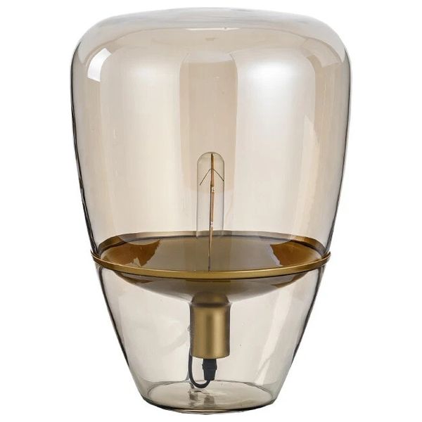 Amber glass shade and metal base. Measuring 280 x 400 mm, it fits on desks and side tables and provides warm, diffused light. Made of durable materials, it's ideal for homes, offices, hotels, and cafes.