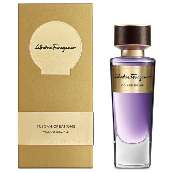 Viola Essenziale is a unisex fragrance from Salvatore Ferragamo that blends floral and fruity top notes with a warm woody base. The opening notes are mimosa, peach, and lychee, followed by powdery notes, iris, heliotrope, and lily in the heart, with patchouli, vanilla, and vetiver in the base.