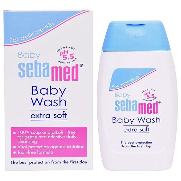 Sebamed Baby Wash Extra Soft is a gentle cleanser designed for a baby's delicate skin. It cleanses softly while helping preserve natural moisture and prevent irritation. The formula is soap-free and alkali-free with a pH of 5.5 and tear-free to avoid eye irritation. Contains allantoin for soothing, with daily-use protection. Pack size 200 ml, made in Germany. Suitable for all skin types, especially sensitive skin.