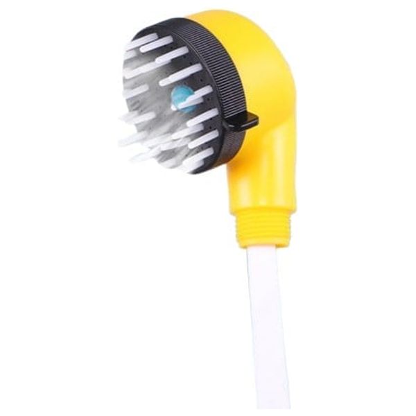 This integrated shower head features a bright yellow handle and a white spray surface. It is designed for easy installation on standard hoses.