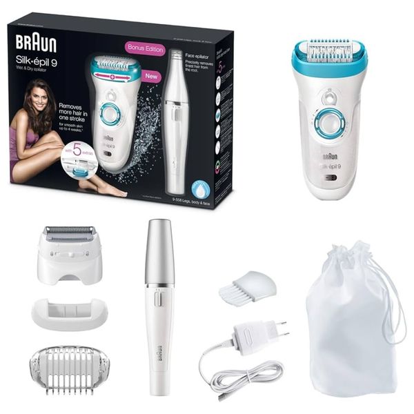 The epilator for face and body, suitable for both wet and dry use, removes even the shortest hair in one pass and gives long lasting smooth skin, with 3 attachments: a facial epilator, a high frequency massage cap and a skin contact cap.