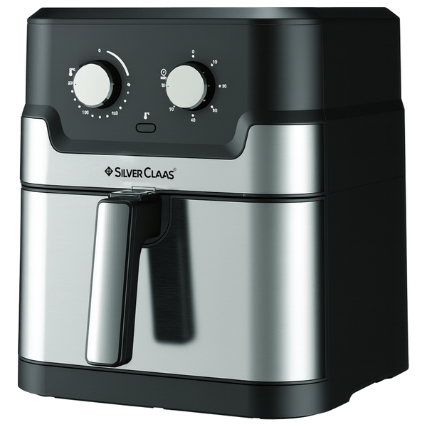 Silver Class 8L 2400W Air Fryer, ideal for healthy cooking without oil, features manual temperature and time control, stylish stainless steel design, easy to use and clean