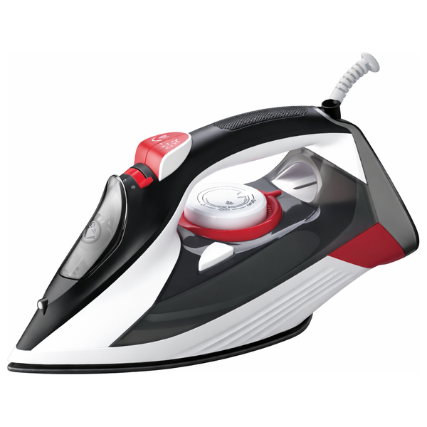 This powerful steam iron, with a power of up to 2200 watts, features an efficient steam system that helps remove wrinkles quickly and effectively. It has a 350ml water tank for extended use without frequent refills, and a smooth-gliding soleplate that glides easily over various fabrics. It also offers adjustable temperature settings to suit different fabric types, and its ergonomic, user-friendly design makes ironing easier and more efficient.