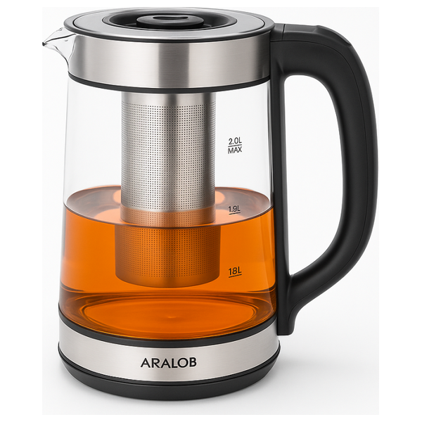 2.0L electric kettle, 1500W for fast and safe boiling, made of high-quality glass with blue LED lighting, 360° rotating base, and automatic shut-off with dry-dry and overheat protection