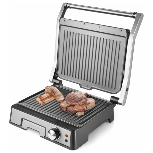 This practical electric grill features a non-stick surface and temperature control, making it ideal for quickly and easily grilling meat, chicken, and vegetables at home. It offers both top and bottom heating for even cooking, a heat-insulated handle for safe use, and is easy to clean. Its sleek design and practical size make it a perfect fit for any kitchen.