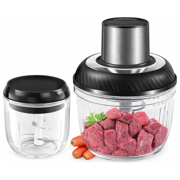 Silver Crest Electric Meat Grinder with dual bowls for versatile grinding. The main bowl (3.5 L) and a supplementary bowl (1 L) let you process meat and vegetables quickly and efficiently. Features sharp stainless steel blades, a powerful 1500 W motor, and removable parts for easy cleaning.