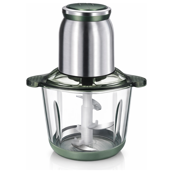 Silver Crest 3L Transparent electric meat and vegetable chopper delivers powerful performance with a 3-liter glass bowl, a 300W motor, and stainless steel blades. The removable parts and secure lid enable easy cleaning and safe operation, making quick work of chopping meat, vegetables, onions, and garlic. Its compact, stable design suits Iraqi kitchens for efficient meal prep.