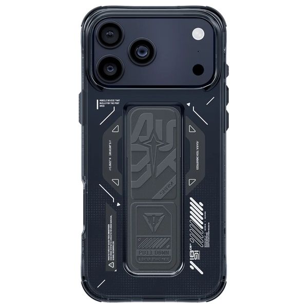 A semi-transparent protective case with a sophisticated, tech-inspired design.