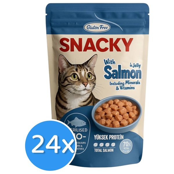 Real salmon, rich in protein, soft jelly texture, easy to eat, rich in minerals and vitamins to support overall health, suitable for neutered adult cats looking for balanced nutrition