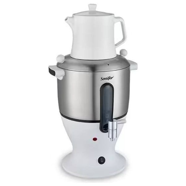 This 6-liter electric samovar with a 0.75-liter top kettle provides powerful and rapid heating, making it ideal for everyday use and entertaining. Made of high-quality, rust-resistant stainless steel, it features a practical top kettle and a durable brass spout for precise water flow control. It also boasts an energy-efficient dual heating system and boil-dry protection.