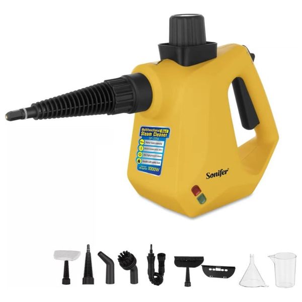 It provides powerful, chemical-free cleaning for household tasks. With 1000 watts of power, steam up to 110°C at 3.2 bar pressure, and a 250 ml water tank, it effectively removes grease, dirt, and bacteria. The steam flow (28±3 g/min) is adjustable to suit different surfaces. The device comes with 6 nozzles and brushes for cleaning floors, tiles, glass, upholstery, kitchens, bathrooms, and tight corners. It is portable and lightweight, and features a long hose for reaching difficult areas. It operates on 220-240 V AC, 50/60 Hz, and includes a safety lock to prevent accidental steam exposure.