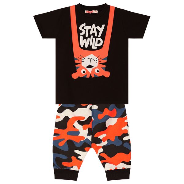 2 piece boy set. Cotton jersey t-shirt with a tiger print on. The set is completed with its cotton, camo printed harem style capri pants. All Denokids Products are manufactured within the Kids Safety Guideline. Has been inspected by metal detectors., Material Top,Bottom: 100% Cotton, Washing ins. Wash at 30°C in WM. Wash reverse with similiar colors. Do not bleach. Do not dry clean. Do not use tumble dry.