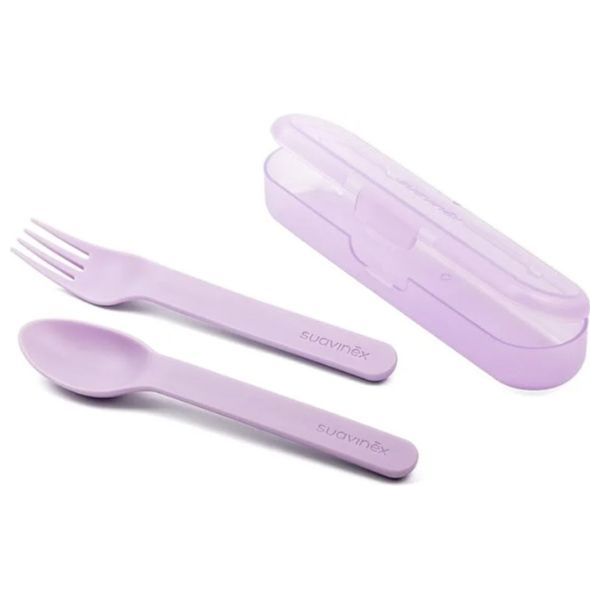 Suavinex BOOO Purple Cutlery Set with Carrying Case is a compact feeding set for toddlers. It includes a fork and a spoon with a sturdy carrying case in purple, designed to support self-feeding journeys for children around 12 months and older. Made from food-grade plastic, the set is easy to clean and travel-friendly, helping little ones learn to eat independently.