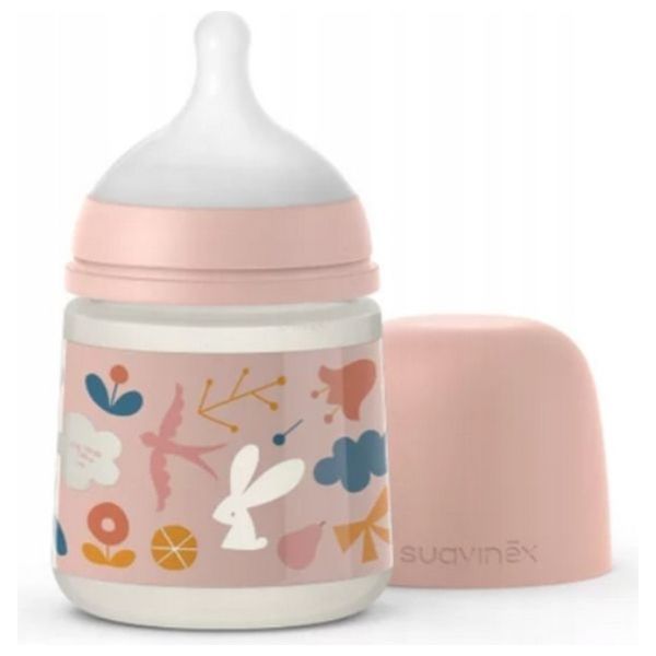 This Suavinex baby feeding bottle features a slow-flow physiological nipple and a pressure-balancing valve to help reduce colic and gas. Designed for newborns, it promotes natural feeding and comfortable handling for caregivers.