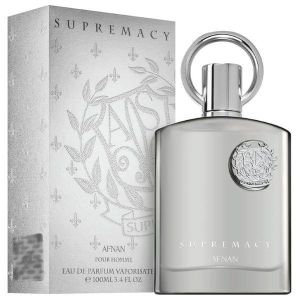 Afnan Supremacy Silver for Men is an Eau de Parfum featuring a bright pineapple opening with black currant, bergamot, and apple. The heart blends birch, patchouli, Moroccan jasmine, and rose, while the base settles with musk, oakmoss, ambergris, and vanilla. This composition delivers a balanced, contemporary fragrance with moderate to long-lasting longevity and moderate projection, suitable for day and evening wear across seasons.