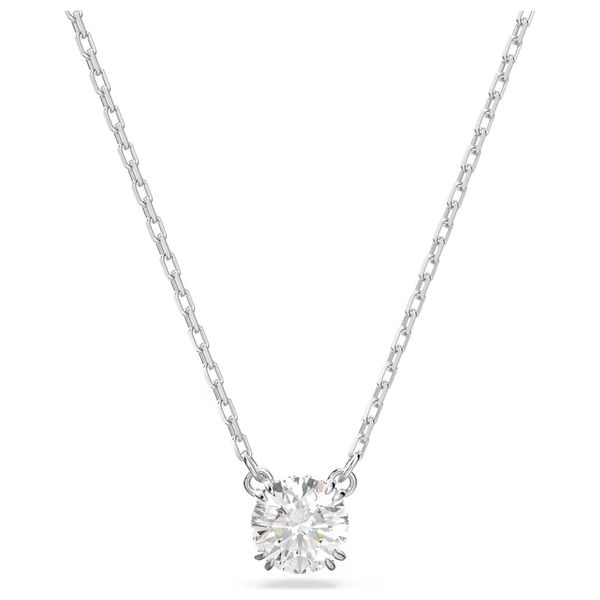 Discover the elegance of Swarovski's Stella pendant, set with a pear-shaped cubic zirconia stone and crafted in rhodium plating. This white piece exudes sophistication and charm. The chain length is adjustable from 14 7/8 to 16 1/2 inches and is secured with a spring ring clasp, making it perfect for a variety of styles and occasions. The Stella pendant adds a touch of luxury to your jewelry collection, highlighting the sparkle of cubic zirconia with an elegant rhodium finish
