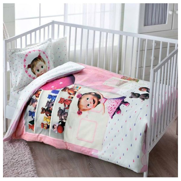 This newborn bedding set from Taj is made from 100% cotton to provide comfort and a peaceful sleep for your baby. It consists of four pieces: a fitted sheet measuring 120 x 180 cm, a duvet cover measuring 100 x 150 cm, and two pillowcases measuring 35 x 45 cm.