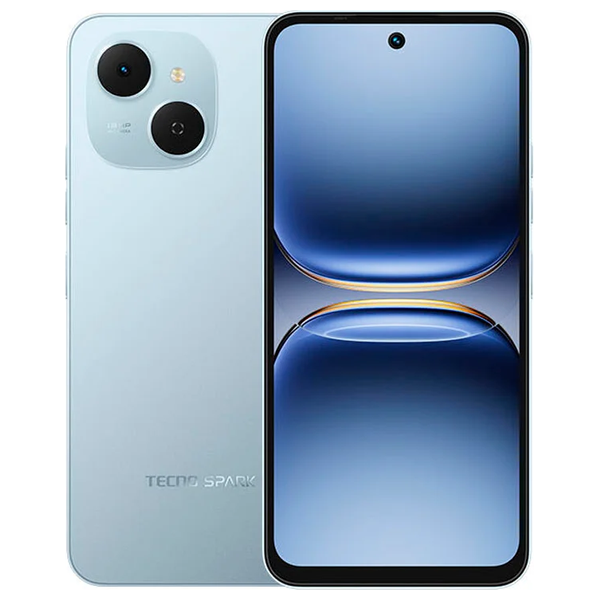 The Tecno Spark 40C in Ripple Blue is a durable smartphone with a 6.67-inch HD+ IPS LCD display, MediaTek Helio G81 chipset, 4GB RAM, 128GB storage, a 13MP rear camera, 8MP front camera, 6000mAh battery with 18W fast charging, side-mounted fingerprint sensor, IP64 dust & splash resistance, and Android 15 with HiOS.
