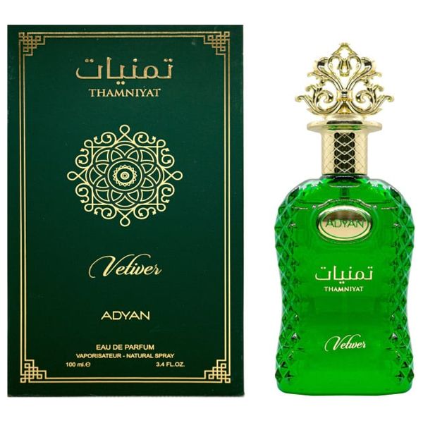 Thamniyat Vetiver by Adyan is a unisex eau de parfum that blends vetiver with warm woody and earthy notes for a natural, elegant aura that lasts. The opening reveals bergamot, ginger, and cardamom, followed by a heart of licorice, oud, and cedarwood, and a base of vanilla and musk. Ideal for daily wear and evening occasions, this fragrance offers long-lasting sillage and a refined, versatile character.