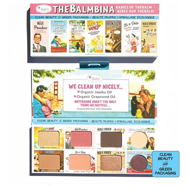The palette features eight of the Balm's most exciting clean and green powders in one sustainable package, including new shades from Male Order and a new highlighter/shimmer, Let's Bolt.