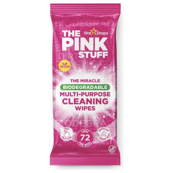 Multi-purpose cleaning wipes provide effective cleaning of hard surfaces using biodegradable plant fibers and a fruity fragrance.