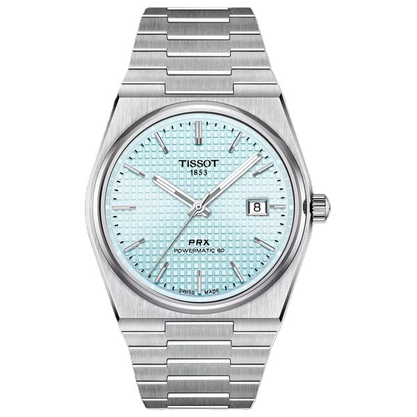 Tissot automatic watch, with Powermatic 80 movement and up to 80 hours power reserve, ice blue dial, scratch-resistant sapphire crystal with anti-reflective coating, transparent case back, quick-release bracelet with butterfly clasp