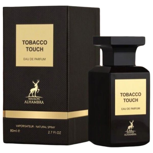 Tobacco Touch by Maison Alhambra is a unisex fragrance opening with spicy tobacco notes, revealing a heart of tobacco, vanilla, tonka bean and cocoa, and finishing with a warm base of dried fruits and woods. The 80 ml bottle provides a balanced scent suitable for day and evening wear.