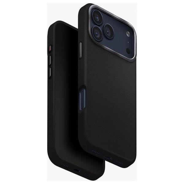 A slim, premium vegan leather case with a dual-toned design and elegant aluminium accents. It offers full edge-to-edge protection with an aluminium camera bezel and side buttons, plus a smooth microfibre lining for added shock absorption. MagClick compatible for magnetic wireless charging, this case blends luxury, durability, and sophistication in one sleek package.