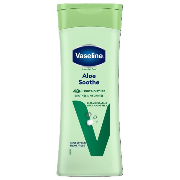 Experience deep hydration and soothing relief with Vaseline Intensive Care Aloe Soothe Body Lotion. Formulated with 100% pure aloe vera extract and micro-droplets of Vaseline Jelly, this lightweight, non-greasy lotion penetrates deeply to restore skin moisture. It is clinically proven to soothe dry and irritated skin, providing a cooling sensation and 48 hours of light moisture. Perfect for daily use, it leaves your skin feeling soft, smooth, and refreshed without any sticky residue.