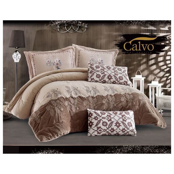 7-piece winter quilt set: 1 faux fur quilt (240x260cm), 1 fitted sheet (200x200x30cm), 2 pillowcases (5+50x75cm), 2 pillowcases (50x75cm), and 1 cushion (45x45cm)