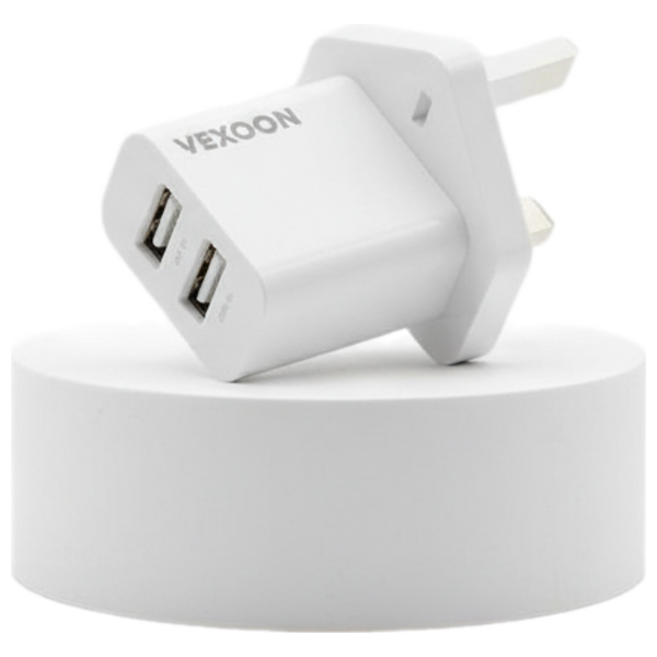 This compact dual-port USB wall charger from Vexoon provides convenient charging for two devices at once. It features 2 USB-A ports, a 5V DC output, and a total current of 2.4A, enabling faster charging. Built with a high-quality charging chipset, it ensures safe operation with a wide range of devices. Universally compatible with USB-powered devices, and suitable for home use or travel .