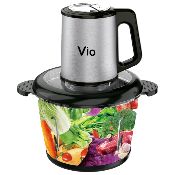 The Vio H04 chopper features a powerful 300W copper motor and a durable glass jar, ideal for chopping vegetables, herbs, and meats efficiently. Its 4-blade knife ensures even results, while the VED copper wire plug guarantees safe and reliable operation. Compact and stylish, this chopper is perfect for quick meal prep.