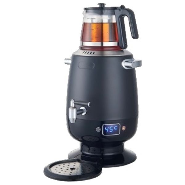220-240V~ 50/60Hz 1800-2200W • 3.5L large stainless steel water tank • 1.0L elegant glass tea pot • German technology • Digital display with dynamic temperature • Keep warm temperature setting from 60-90 degree • Large LED visual display screen • Copper water tap • Easy to operation