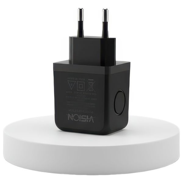 The VISION M167 is a compact 20W dual-port wall charger designed to power today’s devices quickly and safely. The USB-C port delivers up to 20W using Power Delivery 3.0 and PPS, while the USB-A port supports Quick Charge 3.0 for compatible devices. It features a Smart Auto-ID chip that detects the connected device and optimizes energy distribution to protect batteries and maximize charging efficiency. Turbo Power technology enhances fast charging performance while keeping heat under control. The charger accepts universal input (110-240V, 50/60Hz), making it suitable for home, office, and travel use. A built-in protection system guards against overheating, overcharging, and overcurrent to ensure safe operation with iPhone models from 8 to 16 and many Android devices.