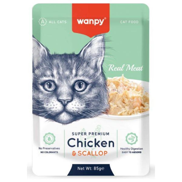 Featuring real chicken and scallops in a jelly-like form, making it easier to digest and providing balanced meals, the recipe contains no artificial preservatives or colors.
