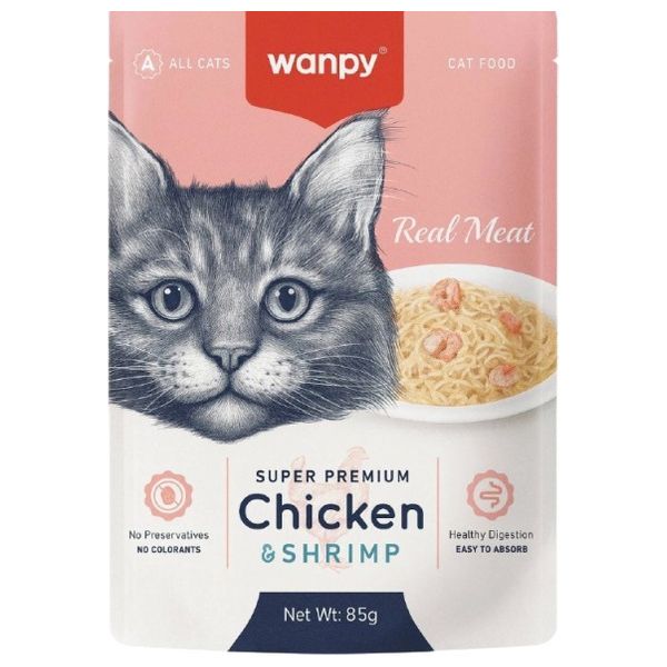 Made with real meat flavored with chicken and shrimp. Contains no preservatives or artificial colors, and is designed to support healthy digestion and easy absorption.