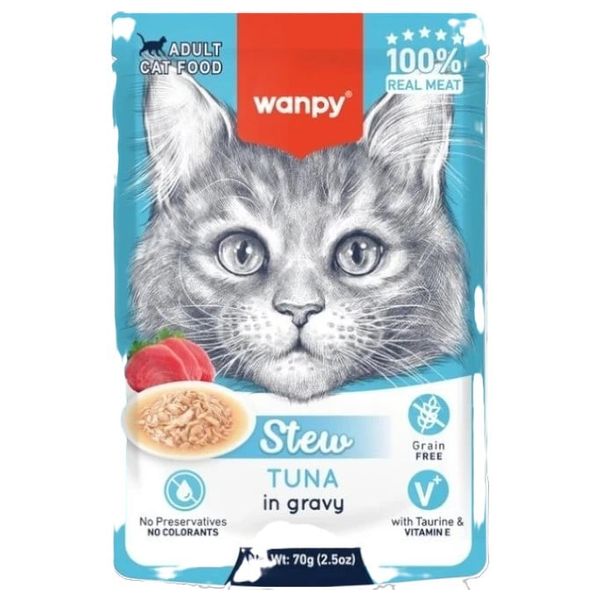 A grain-free, moist food containing real tuna in a delicious sauce. It provides high-quality protein with taurine and vitamin E to support healthy skin and coat development. The recipe is free of preservatives and artificial colors, and contains omega-3 fatty acids to promote healthy coat and digestion.