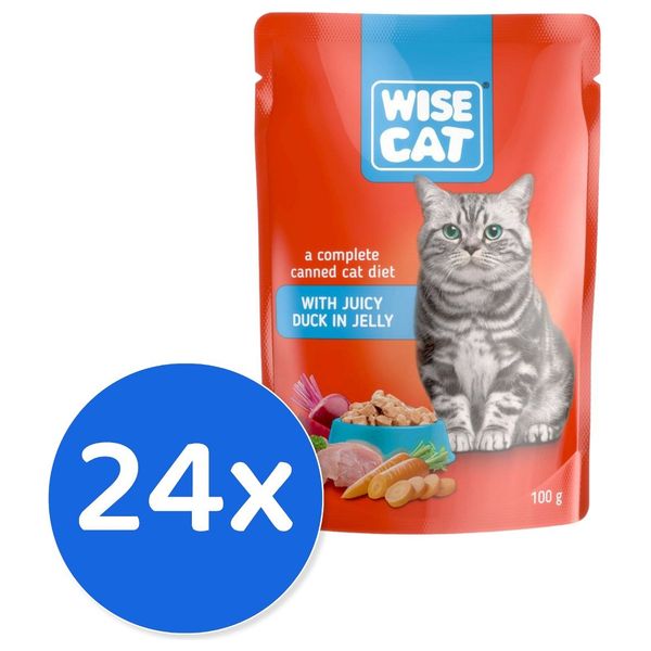 طعام القطط المعلب من وايز كات مع لحم البط اللذيذ في الهلام، يوفر تغذية متكاملة لقططك, تتناسب مع روتين وجبات قططك، مع ضمان وجبات لذيذة وصحية