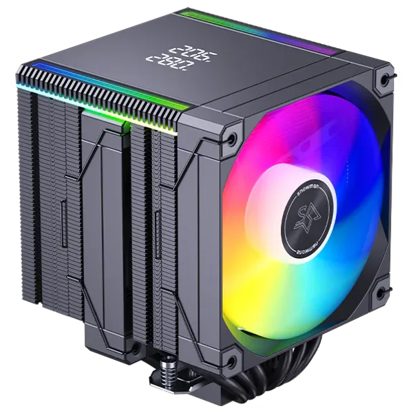 Snowman MT660 Air Cooler with optional ARGB lighting delivers efficient cooling for high-performance CPUs.Key Features:Lighting: ARGB or non-illuminatedHeat Pipes: 6Cooling Capacity (TDP): Up to 250WFan Specifications (120×120×25 mm):Blade Count: 9Speed: 800 ~ 1600 RPM ±10%Airflow: 65 CFMNoise Level: 30dB ±10%