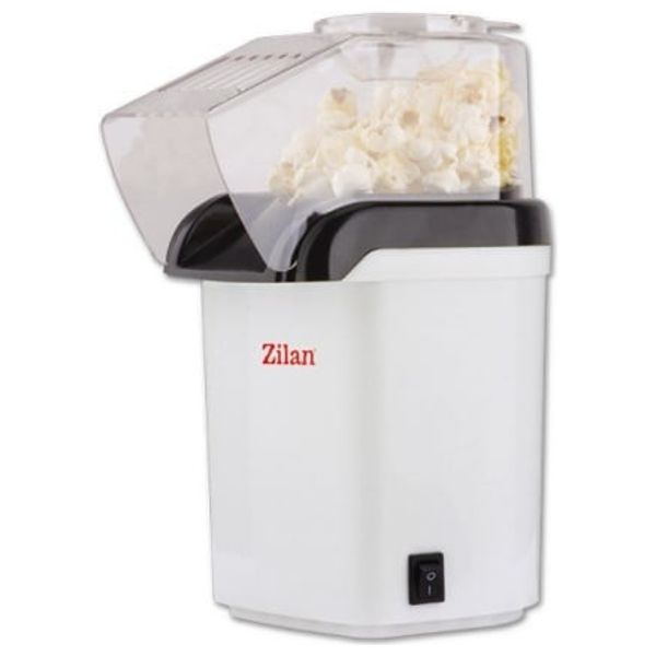 Zilan White Popcorn Maker uses hot air circulation to pop corn with fewer calories. It prepares popcorn without oil and features a non-stick coating for easy cleaning. The compact countertop design includes a convenient On/Off switch and a 1200 Watt motor for quick results, making it a practical addition to everyday snacking at home.