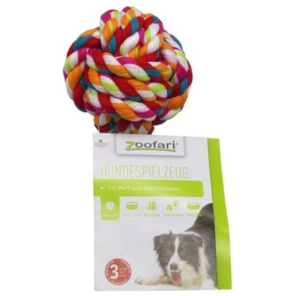 Dog toy made of durable braided cotton rope, designed for interactive play, such as tug of war and fetch, suitable for dogs of all sizes, helping to keep them engaged while playing